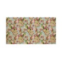Cabeceira de madeira de pinho natural feita à mão em Espanha com impressão de um moderno estampado de cactus em flor em cores vibrantes.