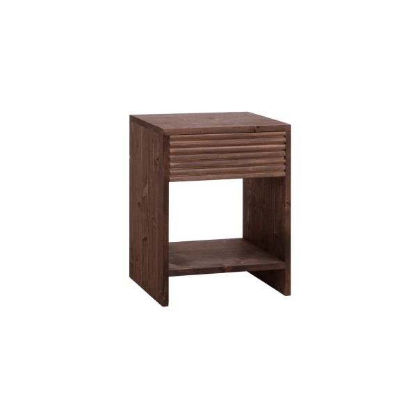 Mesa de cabeceira de madeira maciça com uma gaveta em tom de nogueira de várias medidas